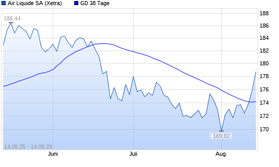 Mit dem Anstieg auf 175,68 EUR hat die Air Liquide-Aktie am 13.08.2025 die 38-Tage-Linie nach oben gekreuzt.