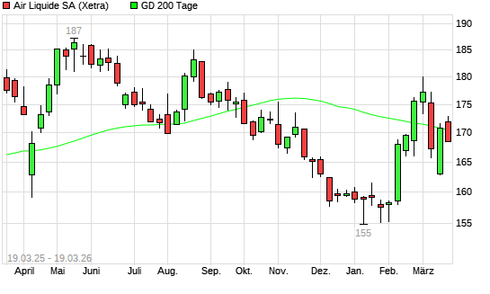 Mit dem Rücksetzer auf 169,76 EUR hat die Air Liquide-Aktie am 18.03.2026 die 200-Tage-Linie nach unten gekreuzt.