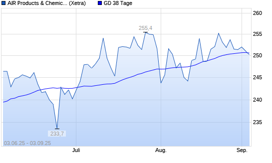 Mit dem Anstieg auf 251,40 EUR hat die Air Products & Chemicals-Aktie am 02.09.2025 die 38-Tage-Linie nach oben gekreuzt.