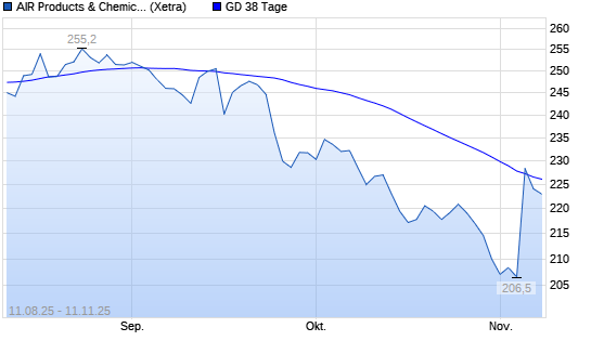 Mit dem Anstieg auf 225,30 EUR hat die Air Products & Chemicals-Aktie am 10.11.2025 die 38-Tage-Linie nach oben gekreuzt.