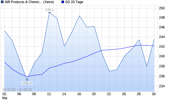 Mit dem Rücksetzer auf 239,90 EUR hat die Air Products & Chemicals-Aktie am 30.05.2025 die 20-Tage-Linie nach unten gekreuzt.