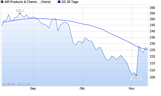 Mit dem Rücksetzer auf 222,60 EUR hat die Air Products & Chemicals-Aktie am 11.11.2025 die 38-Tage-Linie nach unten gekreuzt.
