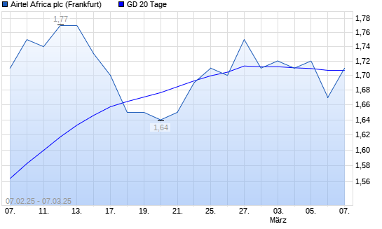 Mit dem Rücksetzer auf 1,67 EUR hat die Airtel Africa-Aktie am 06.03.2025 die 20-Tage-Linie nach unten gekreuzt.