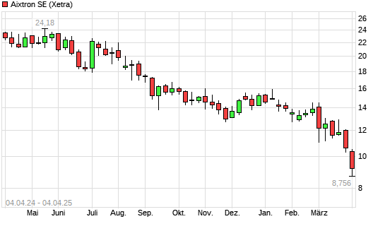 Mit dem Rücksetzer auf 9,87 EUR hat die Aixtron-Aktie (ISIN DE000A0WMPJ6) am 03.04.2025 ein neues 3-Jahres-Tief erreicht und damit den Kurs vom 02.04.2025 eingestellt.