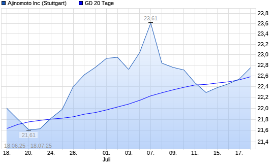 Mit dem Anstieg auf 22,43 EUR hat die Ajinomoto-Aktie am 17.07.2025 die 20-Tage-Linie nach oben gekreuzt.Die Ajinomoto-Aktie befindet sich seit dem 08.05.2025 im ...weiterlesen