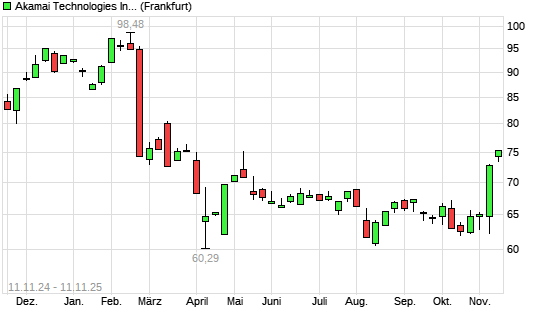 Mit dem Anstieg auf 75,36 EUR hat die Akamai Technologies-Aktie (ISIN US00971T1016) am 10.11.2025 ein neues 6-Monats-Hoch erreicht und damit den Kurs vom 07.11.2025 eingestellt.