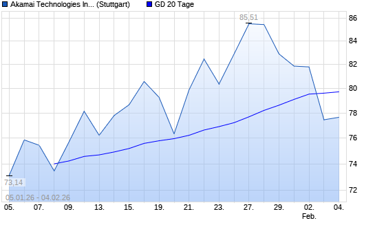 Mit dem Rücksetzer auf 77,43 EUR hat die Akamai Technologies-Aktie am 03.02.2026 die 20-Tage-Linie nach unten gekreuzt.