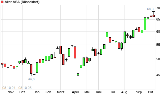 Mit dem Anstieg auf 68,30 EUR hat die Aker ASA-Aktie (ISIN NO0010234552) am 07.10.2025 ein neues 12-Monats-Hoch erreicht und damit den Kurs vom 06.10.2025 eingestellt.