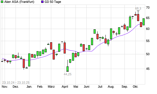 Mit dem Anstieg auf 63,00 EUR hat die Aker ASA-Aktie am 22.10.2025 die 50-Tage-Linie nach oben gekreuzt.