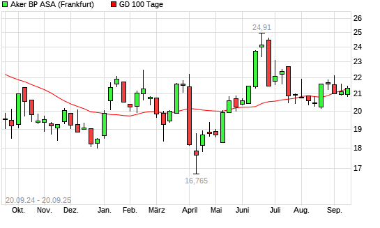 Mit dem Anstieg auf 21,34 EUR hat die Aker BP-Aktie am 19.09.2025 die 100-Tage-Linie nach oben gekreuzt.