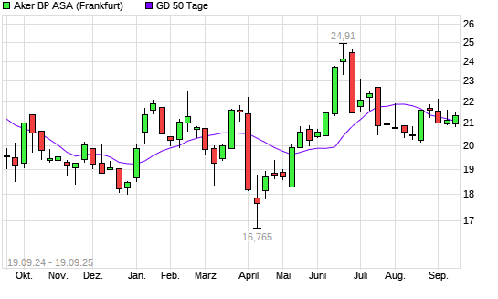 Mit dem Anstieg auf 21,24 EUR hat die Aker BP-Aktie am 18.09.2025 die 50-Tage-Linie nach oben gekreuzt.