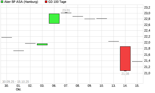 Mit dem Rücksetzer auf 21,36 EUR hat die Aker BP-Aktie am 14.10.2025 die 100-Tage-Linie nach unten gekreuzt.