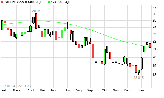 Mit dem Rücksetzer auf 20,87 EUR hat die Aker BP-Aktie am 21.01.2025 die 200-Tage-Linie nach unten gekreuzt.