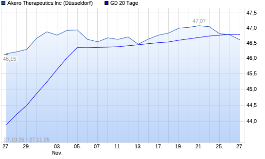 Mit dem Rücksetzer auf 46,88 EUR hat die Akero Therapeutics-Aktie am 26.11.2025 die 20-Tage-Linie nach unten gekreuzt.