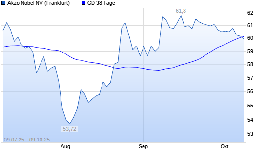 Mit dem Rücksetzer auf 59,94 EUR hat die Akzo Nobel-Aktie am 08.10.2025 die 38-Tage-Linie nach unten gekreuzt.