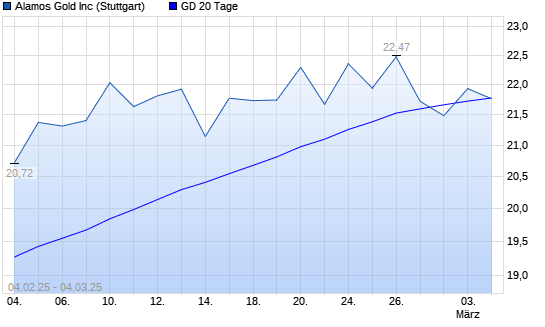 Mit dem Anstieg auf 21,98 EUR hat die Alamos Gold-Aktie am 03.03.2025 die 20-Tage-Linie nach oben gekreuzt.