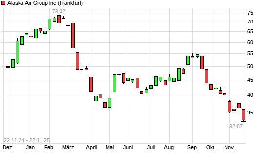 Mit dem Rücksetzer auf 32,89 EUR hat die Alaska Air Group-Aktie (ISIN US0116591092) am 21.11.2025 ein neues 12-Monats-Tief erreicht und damit den Kurs vom 18.11.2025 eingestellt.Die Alaska ...weiterlesen