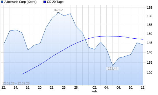 Mit dem Anstieg auf 147,86 EUR hat die Albemarle-Aktie am 11.02.2026 die 20-Tage-Linie nach oben gekreuzt.