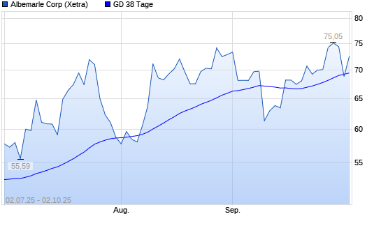 Mit dem Anstieg auf 71,61 EUR hat die Albemarle-Aktie am 01.10.2025 die 38-Tage-Linie nach oben gekreuzt.