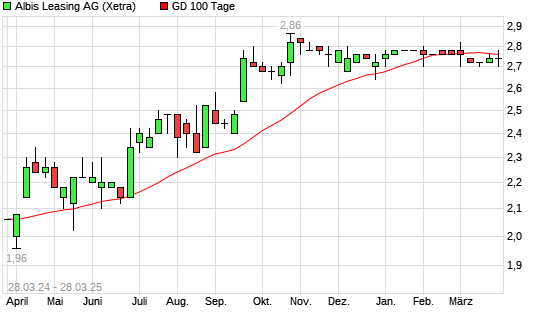 Mit dem Rücksetzer auf 2,72 EUR hat die Albis Leasing-Aktie am 27.03.2025 die 100-Tage-Linie nach unten gekreuzt.