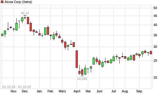 Mit dem Anstieg auf 28,64 EUR hat die Alcoa Upstream-Aktie (ISIN US0138721065) am 30.09.2025 ein neues 6-Monats-Hoch erreicht und damit den Kurs vom 29.09.2025 eingestellt.