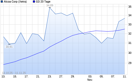 Mit dem Anstieg auf 33,58 EUR hat die Alcoa Upstream-Aktie am 10.11.2025 die 20-Tage-Linie nach oben gekreuzt.