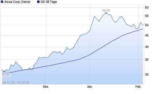 Mit dem Anstieg auf 50,31 EUR hat die Alcoa Upstream-Aktie am 03.02.2026 die 38-Tage-Linie nach oben gekreuzt.