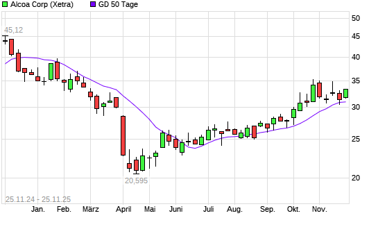 Mit dem Anstieg auf 32,77 EUR hat die Alcoa Upstream-Aktie am 24.11.2025 die 50-Tage-Linie nach oben gekreuzt.