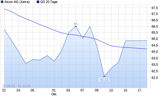 Mit dem Rücksetzer auf 64,06 EUR hat die Alcon-Aktie am 20.10.2025 die 20-Tage-Linie nach unten gekreuzt.