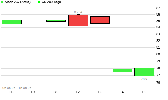 Mit dem Rücksetzer auf 80,00 EUR hat die Alcon-Aktie am 14.05.2025 die 200-Tage-Linie nach unten gekreuzt.