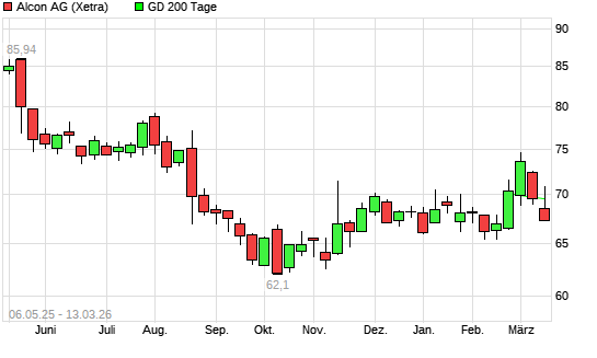 Mit dem Rücksetzer auf 69,10 EUR hat die Alcon-Aktie am 12.03.2026 die 200-Tage-Linie nach unten gekreuzt.