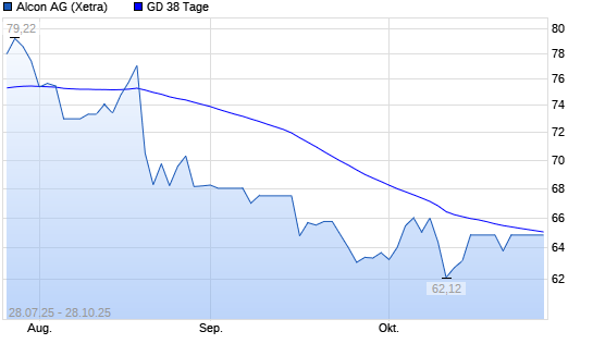 Mit dem Rücksetzer auf 65,12 EUR hat die Alcon-Aktie am 27.10.2025 die 38-Tage-Linie nach unten gekreuzt.