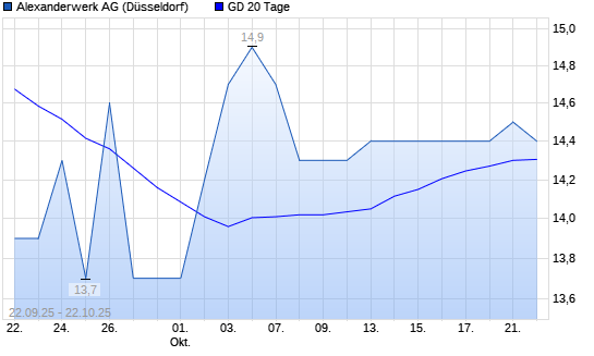 Mit dem Anstieg auf 14,60 EUR hat die Alexanderwerk-Aktie am 21.10.2025 die 20-Tage-Linie nach oben gekreuzt.