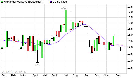 Mit dem Anstieg auf 14,20 EUR hat die Alexanderwerk-Aktie am 22.12.2025 die 50-Tage-Linie nach oben gekreuzt.