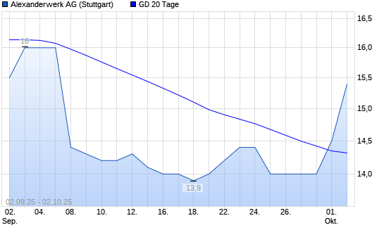 Mit dem Rücksetzer auf 14,20 EUR hat die Alexanderwerk-Aktie am 01.10.2025 die 20-Tage-Linie nach unten gekreuzt.