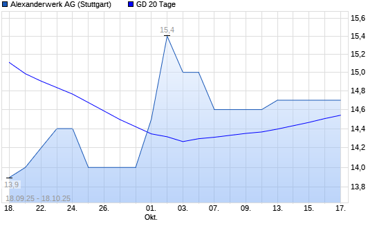 Mit dem Rücksetzer auf 14,50 EUR hat die Alexanderwerk-Aktie am 17.10.2025 die 20-Tage-Linie nach unten gekreuzt.