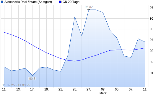 Mit dem Anstieg auf 94,32 EUR hat die Alexandria Real Estate-Aktie am 10.03.2025 die 20-Tage-Linie nach oben gekreuzt.