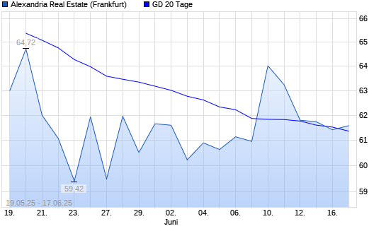 Mit dem Rücksetzer auf 61,42 EUR hat die Alexandria Real Estate-Aktie am 16.06.2025 die 20-Tage-Linie nach unten gekreuzt.