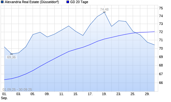 Mit dem Rücksetzer auf 70,76 EUR hat die Alexandria Real Estate-Aktie am 29.09.2025 die 20-Tage-Linie nach unten gekreuzt.