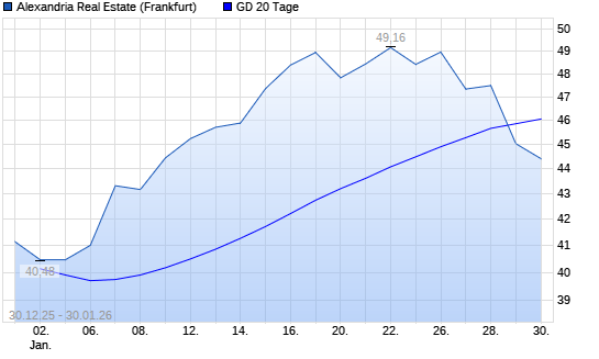 Mit dem Rücksetzer auf 45,02 EUR hat die Alexandria Real Estate-Aktie am 29.01.2026 die 20-Tage-Linie nach unten gekreuzt.