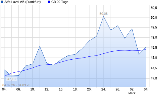 Mit dem Rücksetzer auf 48,17 EUR hat die Alfa Laval-Aktie am 03.03.2026 die 20-Tage-Linie nach unten gekreuzt.