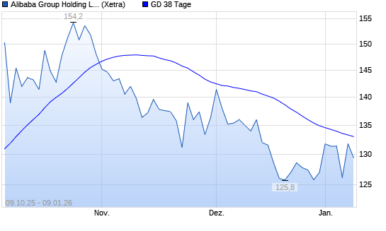 Mit dem Anstieg auf 132,40 EUR hat die Alibaba-Aktie am 08.01.2026 die 38-Tage-Linie nach oben gekreuzt.