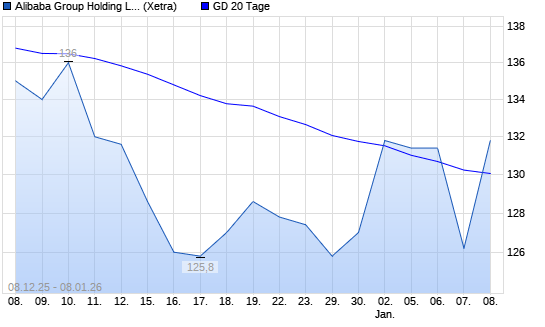 Mit dem Rücksetzer auf 125,80 EUR hat die Alibaba-Aktie am 07.01.2026 die 20-Tage-Linie nach unten gekreuzt.