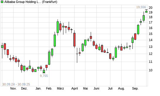 Mit dem Anstieg auf 19,20 EUR hat die Alibaba Group Holding-Aktie (ISIN KYG017191142) am 29.09.2025 ein neues 3-Jahres-Hoch erreicht und damit den Kurs vom 24.09.2025 eingestellt.