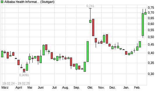 Mit dem Anstieg auf 0,73 EUR hat die Alibaba Health Information Technology-Aktie (ISIN BMG0171K1018) am 18.02.2025 ein neues 12-Monats-Hoch erreicht und damit den Kurs vom 02.10.2024 eingestellt.