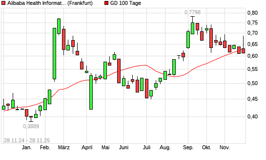 Mit dem Rücksetzer auf 0,63 EUR hat die Alibaba Health Information Technology-Aktie am 27.11.2025 die 100-Tage-Linie nach unten gekreuzt.