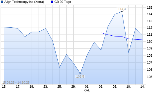 Mit dem Anstieg auf 110,80 EUR hat die Align Technology-Aktie am 13.10.2025 die 20-Tage-Linie nach oben gekreuzt.