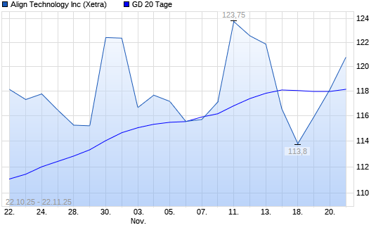 Mit dem Anstieg auf 122,75 EUR hat die Align Technology-Aktie am 21.11.2025 die 20-Tage-Linie nach oben gekreuzt.