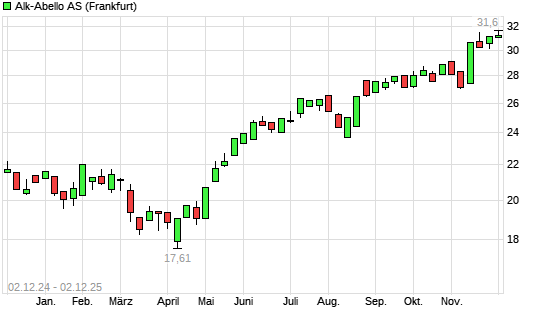 Mit dem Anstieg auf 31,48 EUR hat die Alk Abello-Aktie (ISIN DK0061802139) am 01.12.2025 ein neues All-Time-High erreicht und damit den Kurs vom 20.11.2025 eingestellt.