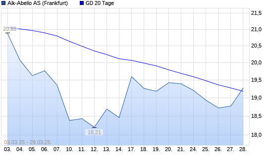 Mit dem Anstieg auf 19,28 EUR hat die Alk Abello-Aktie am 28.03.2025 die 20-Tage-Linie nach oben gekreuzt.